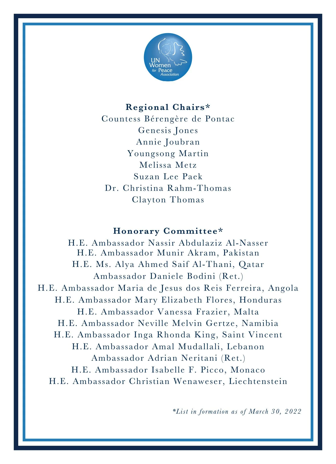 The UN Women for Peace Association is dedicated to activities that promote tolerance and respect toward the creation of a peaceful world. We envision a world in which women everywhere have the same opportunities: